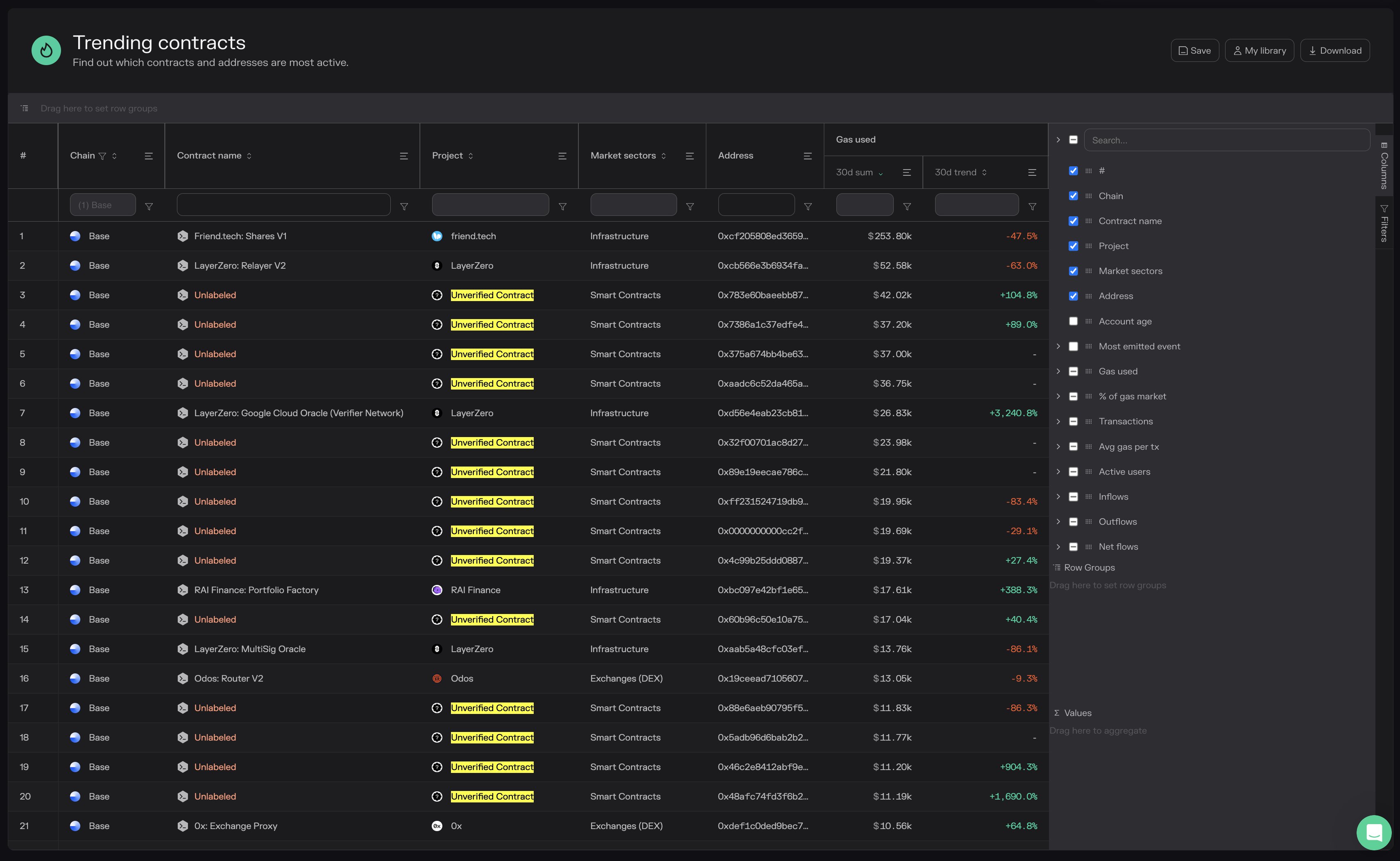 14/21, or 66%, of the top gas-consuming smart contracts on Base, a layer-2 platform for building and deploying smart contracts, are unverified. According to Token Terminal data on October 24, the same contracts are some of the most actively used, reading from gas fee trends over the last month.