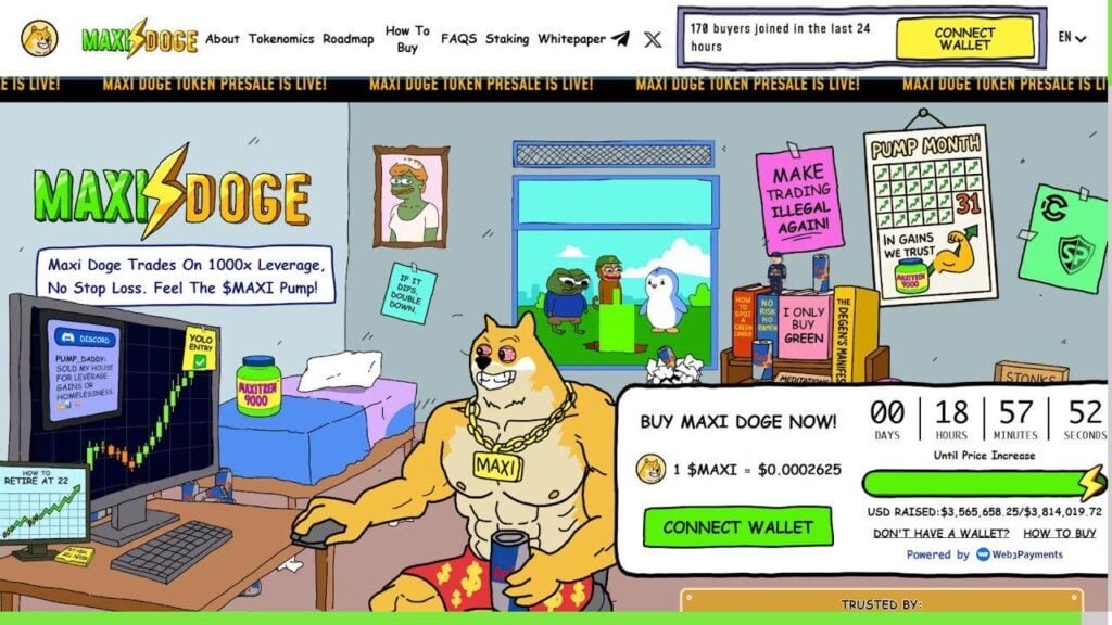 At the time of writing, the presale has raised over $3.5 million, showing growing excitement around the project. One $MAXI can be bought for $0.0002625 using ETH, USDT, BNB, or directly through a debit/credit bank card.