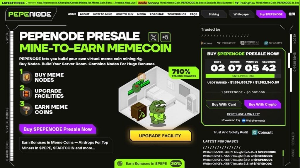 Many crypto analysts are optimistic about its long-term potential, predicting that $PEPENODE could gain significant value as its community grows. For gamers and meme coin fans who enjoy earning while they play, Pepenode offers both entertainment and potential rewards, making it one of the best altcoins to buy as Bitcoin records all-time highs.