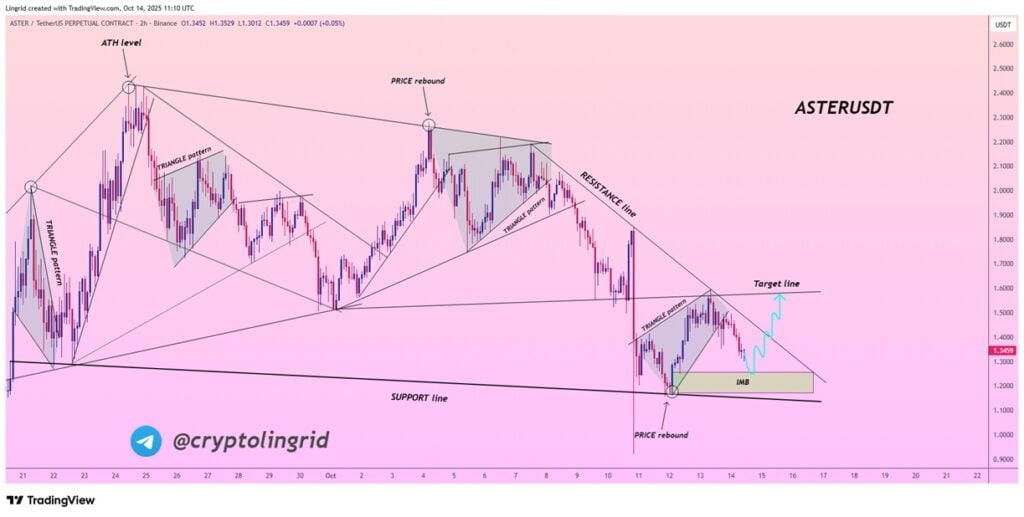 A breakout above $1.45 could spark a sharp rally if buying momentum continues. In a recent post, popular analyst Crypto General noted that Aster survived the latest market dump and reclaimed the $1.5 support level, calling it a crucial zone for recovery.