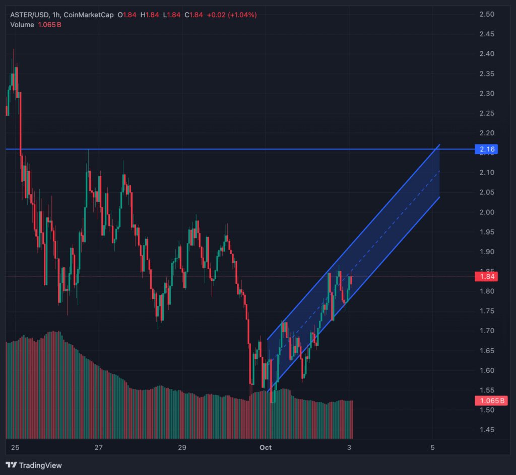 In terms of technicals, Aster has been following a rising channel. If the momentum continues, the project could reach $2.16. However, it is important to keep in mind that the price action has been volatile, which means users should also be cautious of consolidation phases.