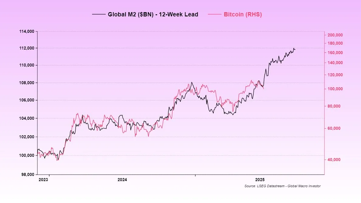 Bitcoin Price And Global M2 Supply. Source: Raoul Pal