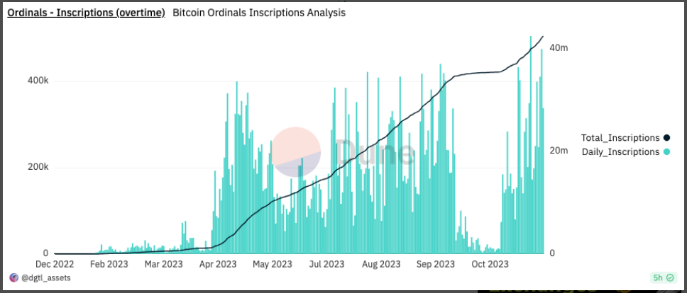From late October, Ordinals inscriptions increased by almost 6 million. Source: Dune Analytics