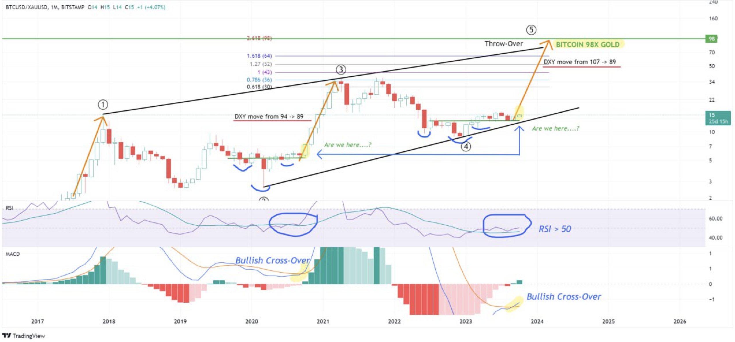 Prominent figures in the crypto analytics industry, the co-founders of Glassnode, have expressed their belief in Bitcoin’s potential to reach six figures. Drawing attention to the BTC-Gold ratio, they suggest that Bitcoin could rise to approximately 98 times the price of Gold.