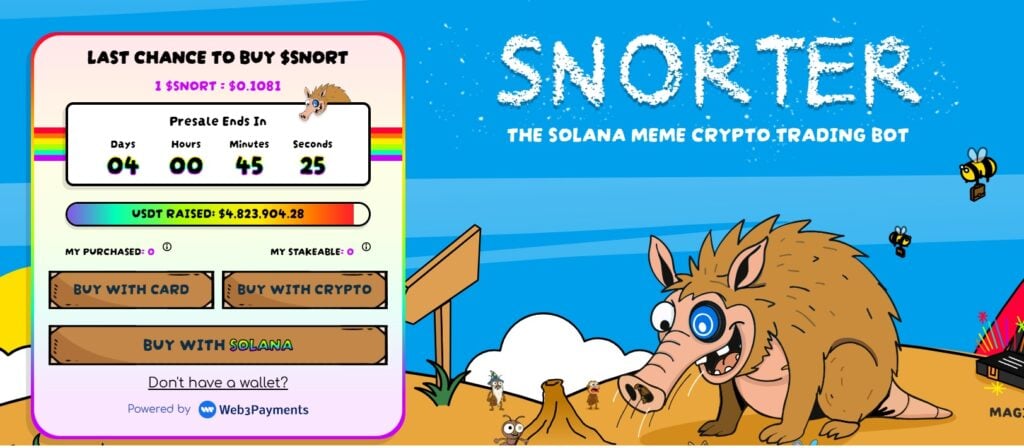 Snorter Token is a Solana-based meme coin currently in its presale stage, designed as a crypto trading bot with real utility.