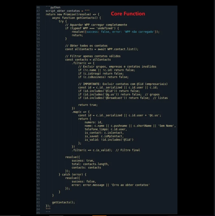 Figure 7. The malware’s JavaScript code that steals victims’ WhatsApp contact lists. Source: SpiderLabs