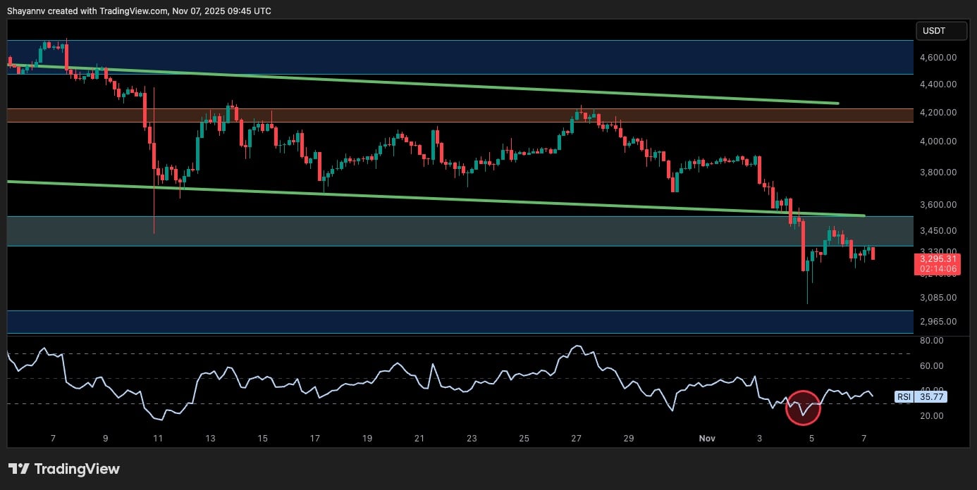 With many positions flushed and the RSI nearing oversold regions across multiple timeframes, the market might soon be due for a reset. Yet, traders are likely to stay cautious, waiting for clearer strength and a break back above $3,500 before reloading on longs.