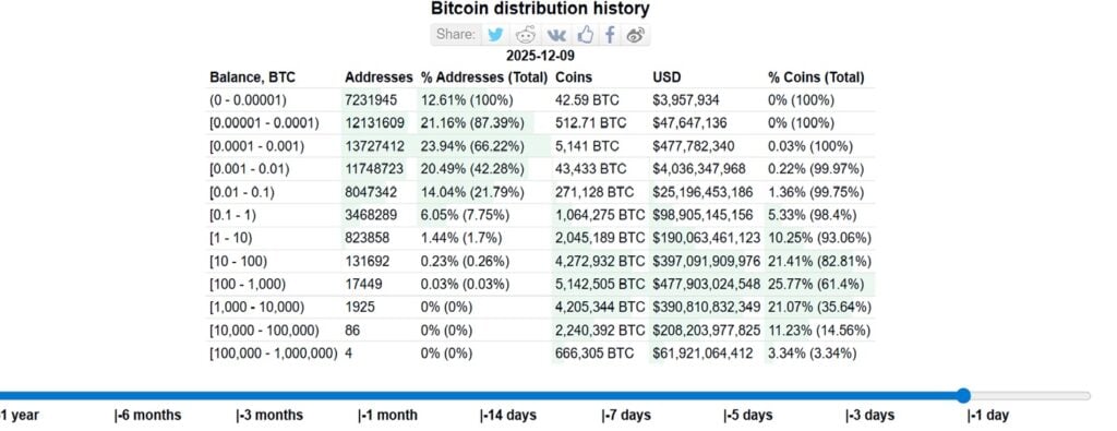- Retail is Selling: Conversely, the number of addresses holding between 1 to 10 Bitcoin has “drastically reduced,” dropping by about 6,000 addresses over a three-month period, suggesting smaller retail holders are capitulating or taking profits. These trends point to accumulation by larger holders amid general market caution.