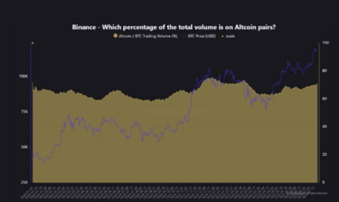 Altcoins now account for 71 % of all Binance Futures trades, signaling a shift from Bitcoin, as traders aggressively rotate into riskier assets.