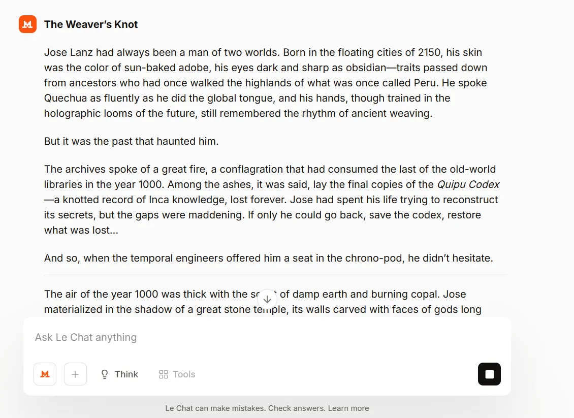 Mistral 3 Large is also pretty loose in terms of censorship, making it the better option for quick role play when choosing between ChatGPT, Claude, or Gemini.