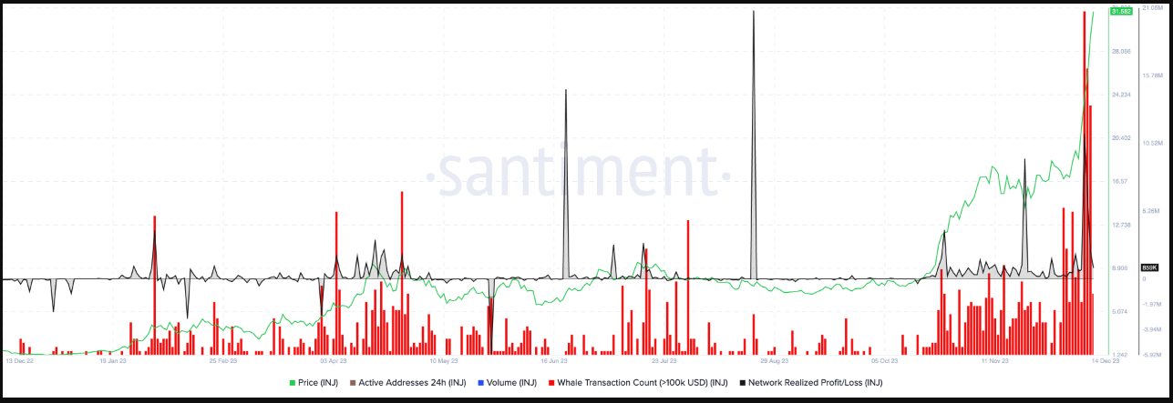The spike is also consistent with recent market statistics that Santiment, a platform that streamlines on-chain monitoring, released. According to the data, the market capitalization of the INJ coin had a significant surge, rising by almost 250% since the middle of October.
