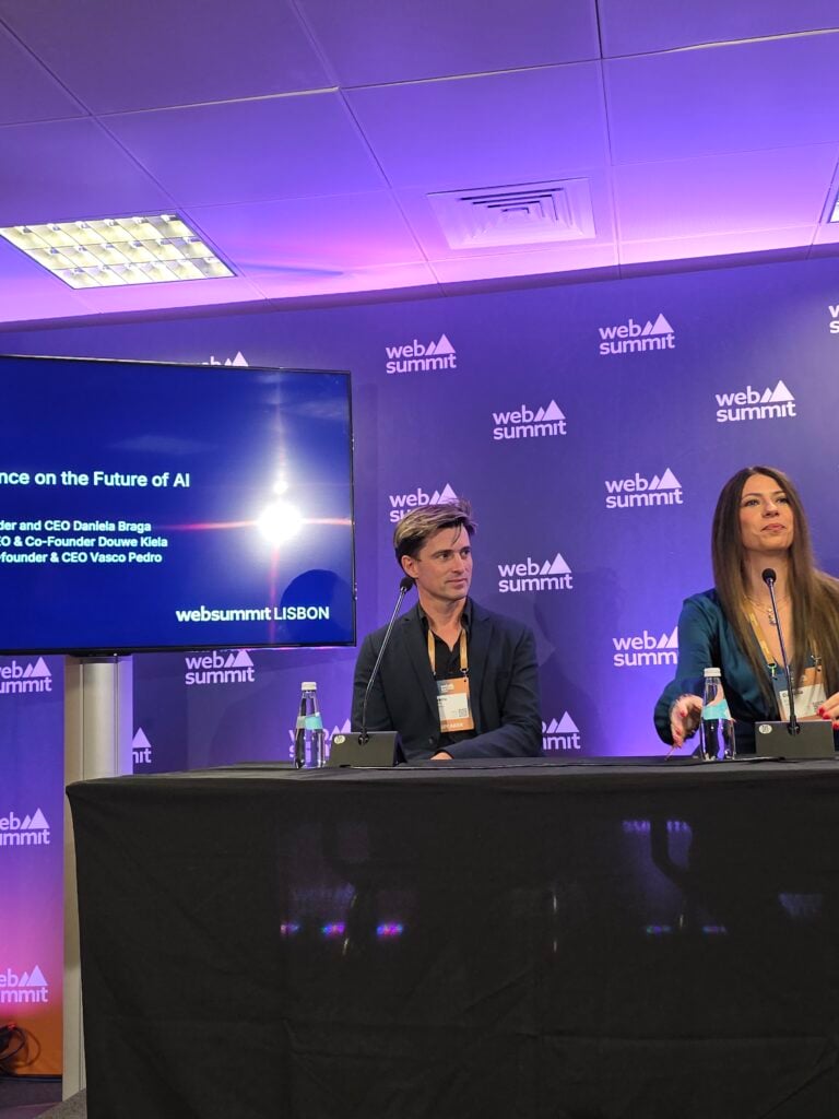 In the afternoon, a press conference was held with AI representatives such as Daniela Brega (Defined AI), Vasco Pedro (Spinnable), and Douwe Kiela (Contextual AI) on the future of artificial intelligence.