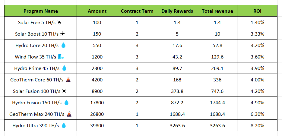 ⚡Example contracts: Solar Boost 10 TH/s ☀️, Hydro Max 25 TH/s 💧