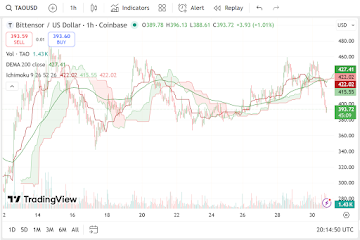 Bittensor (TAO), one of the standout AI-powered blockchain tokens, also faced downside movement. TAO trades at $392.48, a 9.12% dip, though its trading volume climbed 13.53% to $468.61 million, suggesting active repositioning rather than exit selling.