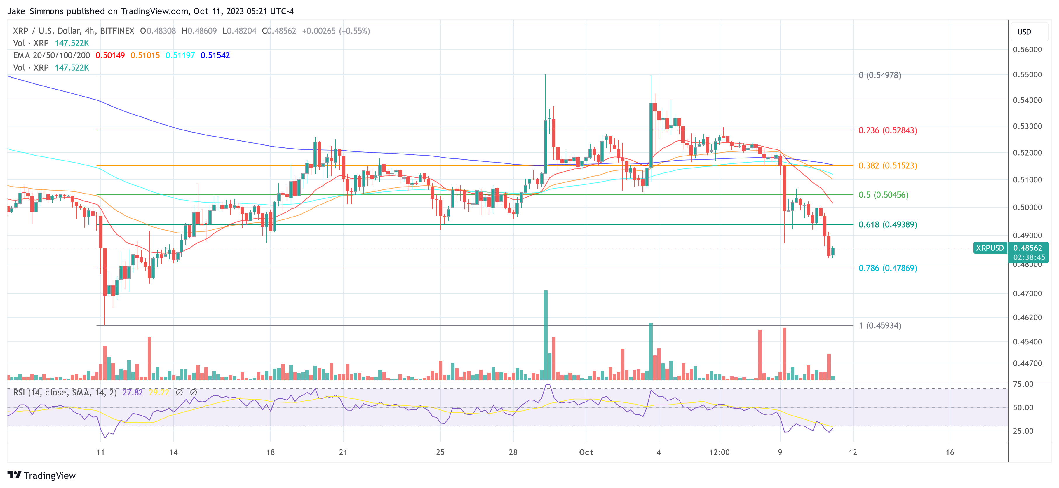 At press time, the XRP price fell below the 61.8% Fibonacci retracement level and was trading at $0.4856, representing a loss of 3.3% in the last 24 hours.
